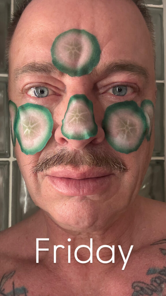 Jag köper då en fin flaska vitt, en ansiktmask (som otippat visar sig innehålla fejkade gurkskivor med något grejs på) och går hem till mig. Jag kör rakning, LED-mask och ansiktsmask samtidigt som jag har satt igång min nya bok. Den börjar mycket bra och författaren till ”De oskyldiga” heter David Baldacci.