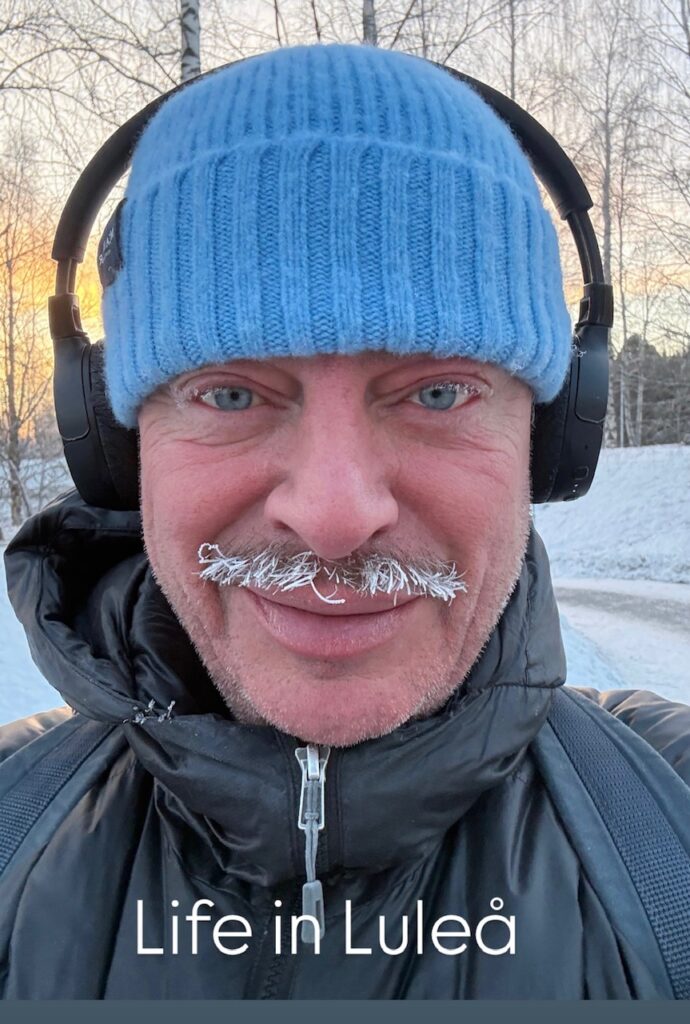 Kylan håller sig kvar och så här ser man ut efter en promenad till jobbet. Men vad gör lite kyla då en varm fest väntar på en i morgon.